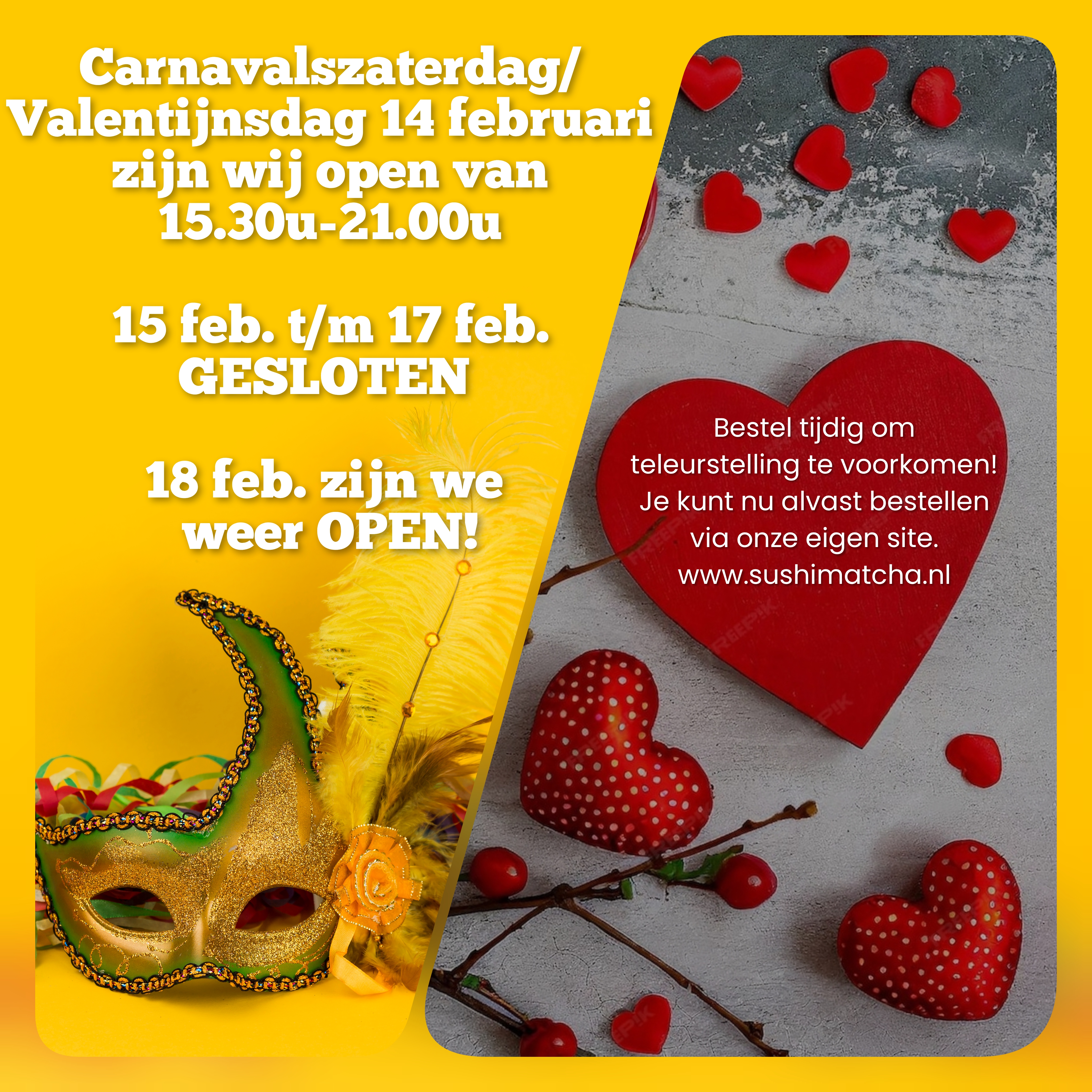 | Zaterdag | 15:30-21:00 |